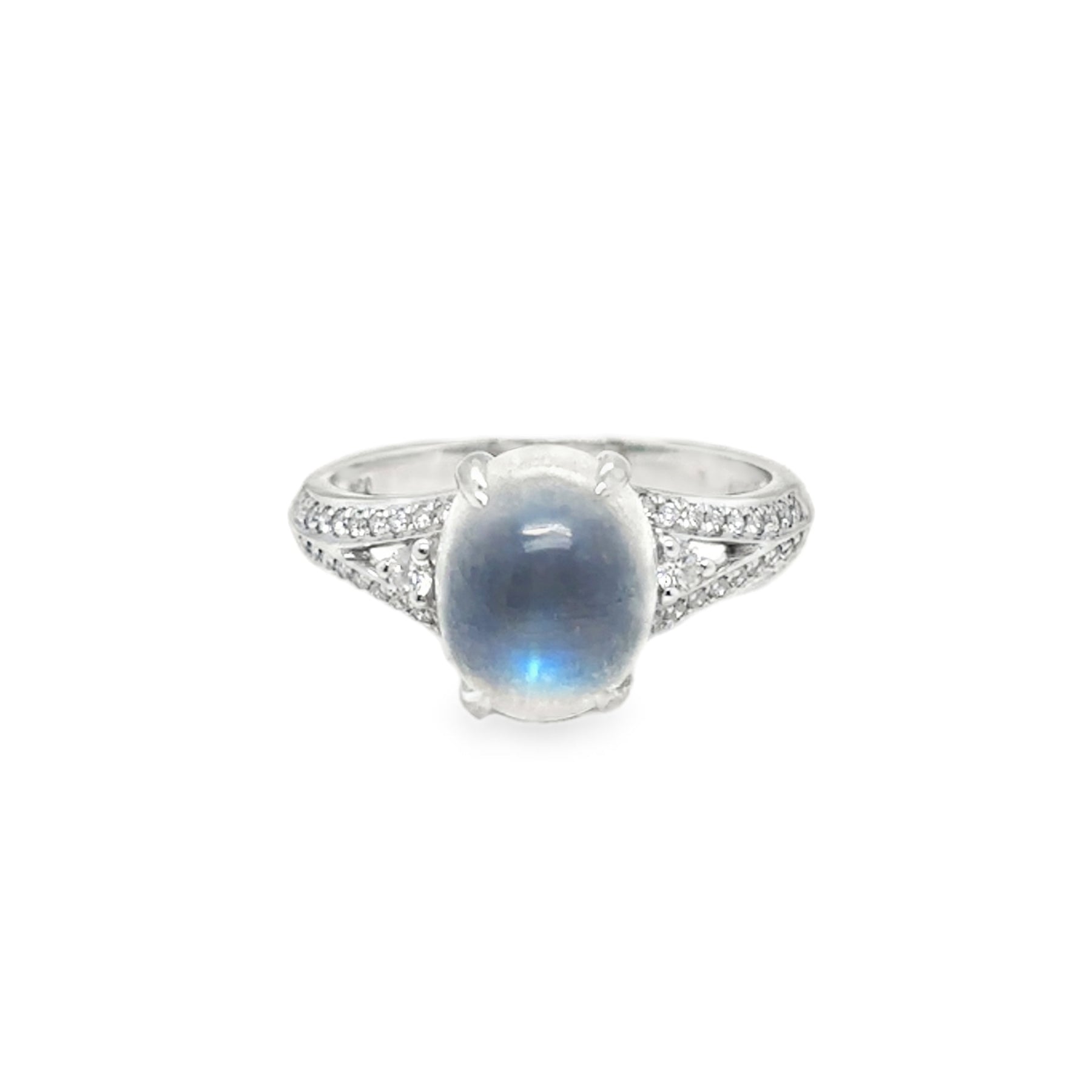 18KW Rainbow Moonstone and Diamond Ring
