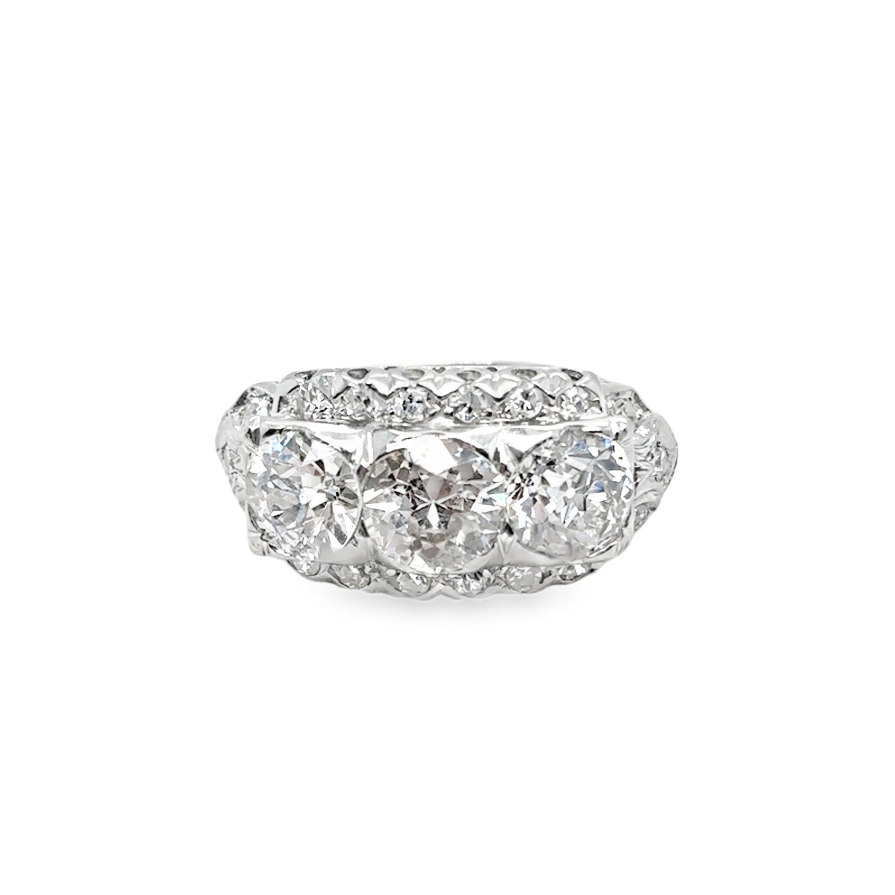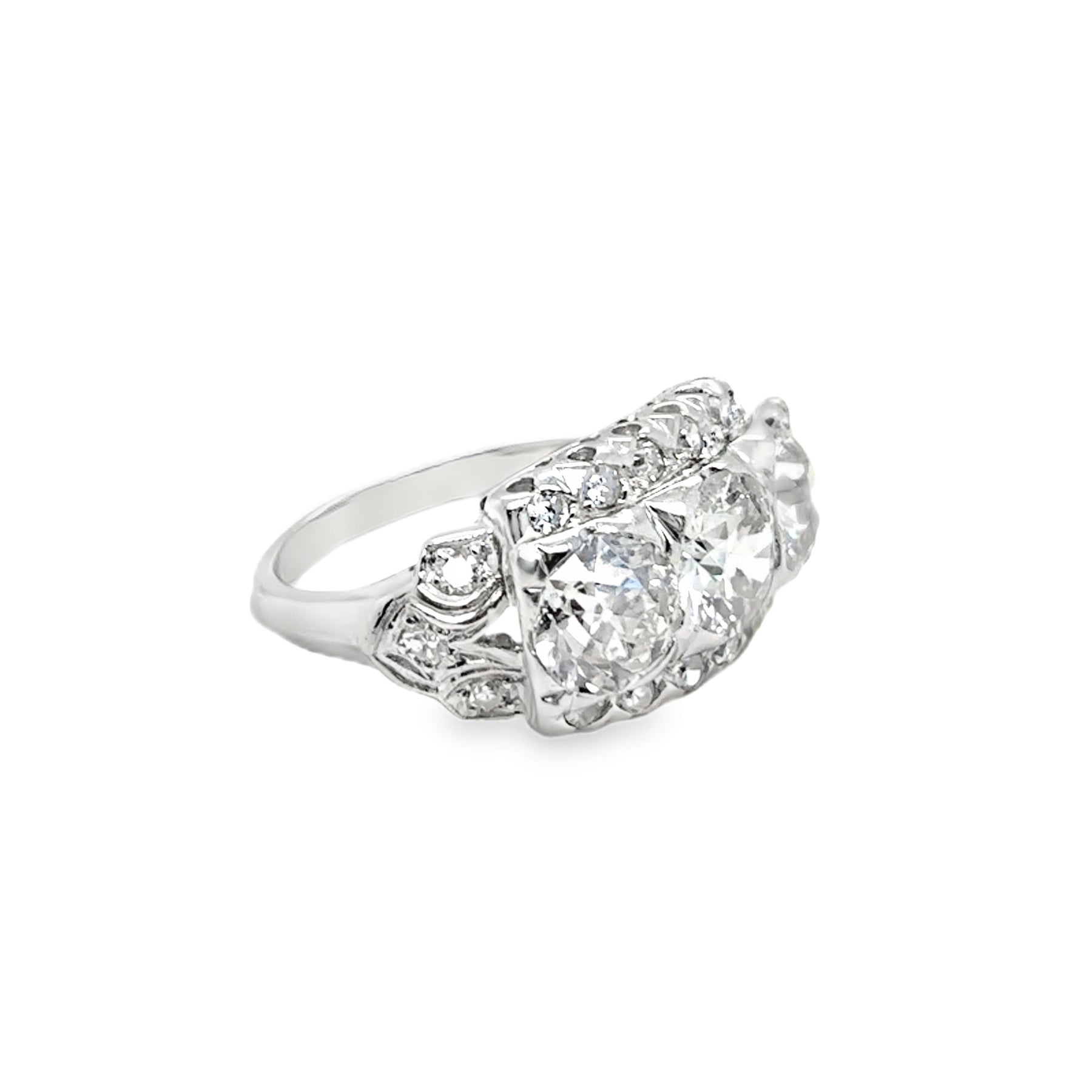 3. Total 3-Stone Old Euro Cut Diamond Weight: 2.25 ct