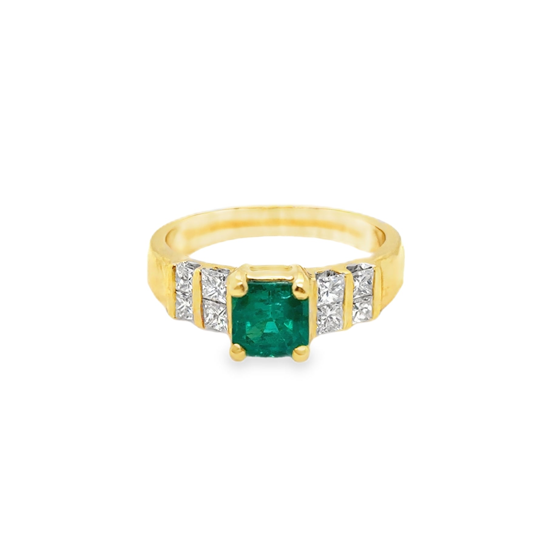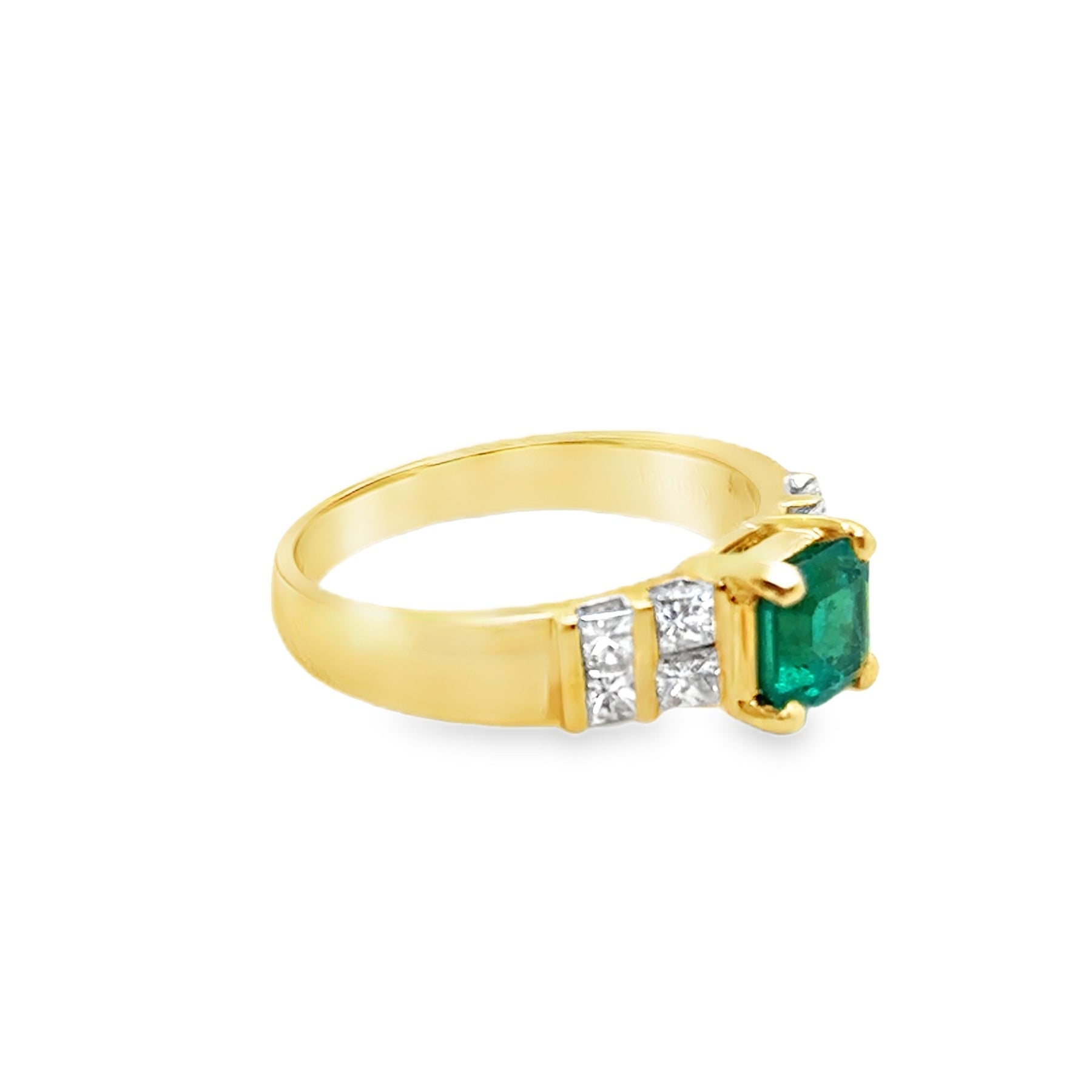 18KY Princess Cut Emerald Ring with Channel Set Diamond Ring