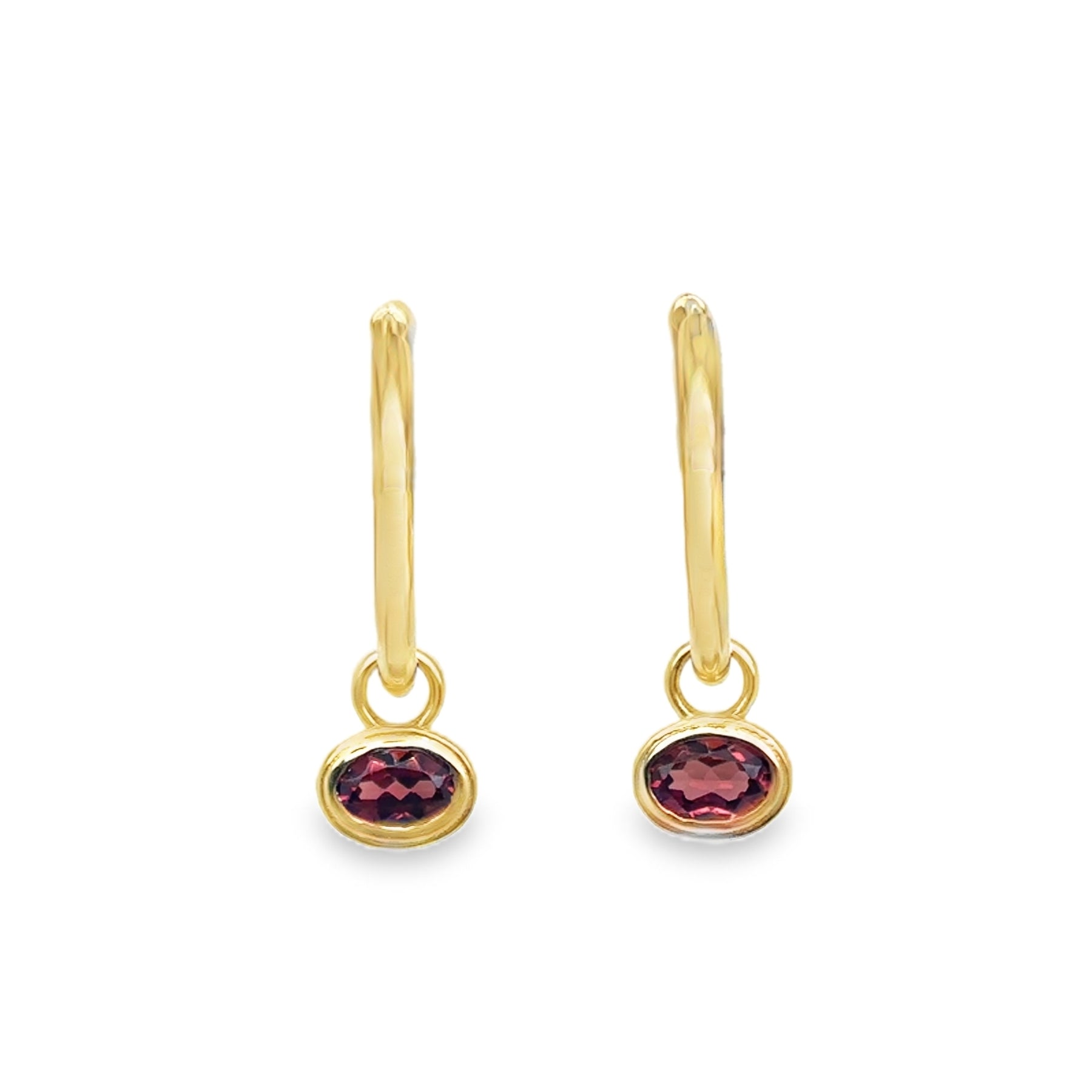 Elevate your jewelry collection with these 14KY hoop dangle earrings featuring 0.85 carats total weight of vibrant red garnets. Designed for versatility, the charming garnet dangles can be removed, allowing you to customize your look from bold to classic. Crafted in 14-karat yellow gold, these earrings combine timeless elegance with adaptable style, perfect for both everyday wear and special occasions.