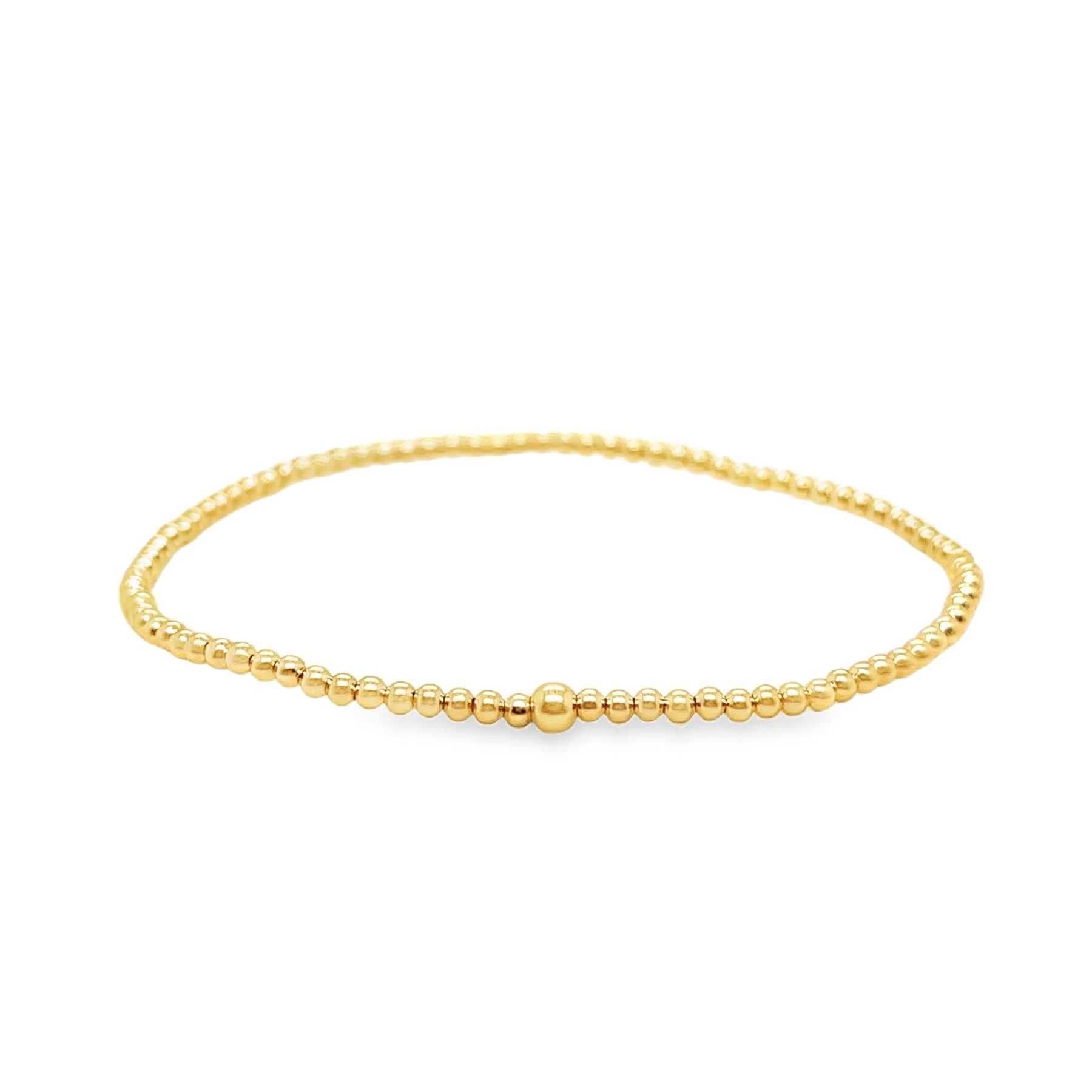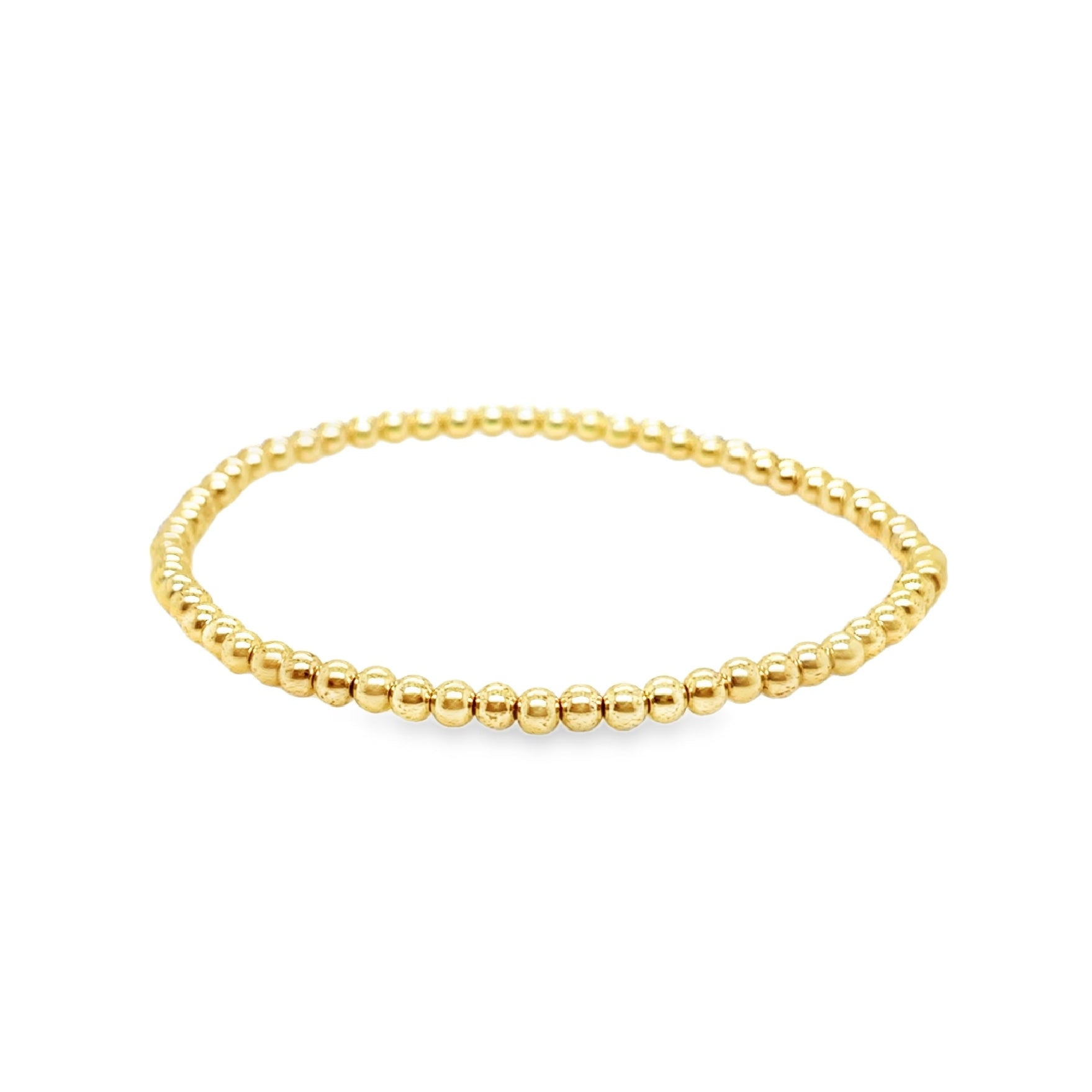 This 14KY gold-filled beaded bracelet is available in your choice of 2mm or 3mm and measures 6.35 inches with a stretch design for a comfortable, secure fit. Crafted with durable gold-filled material, it offers lasting shine and resistance to tarnish.