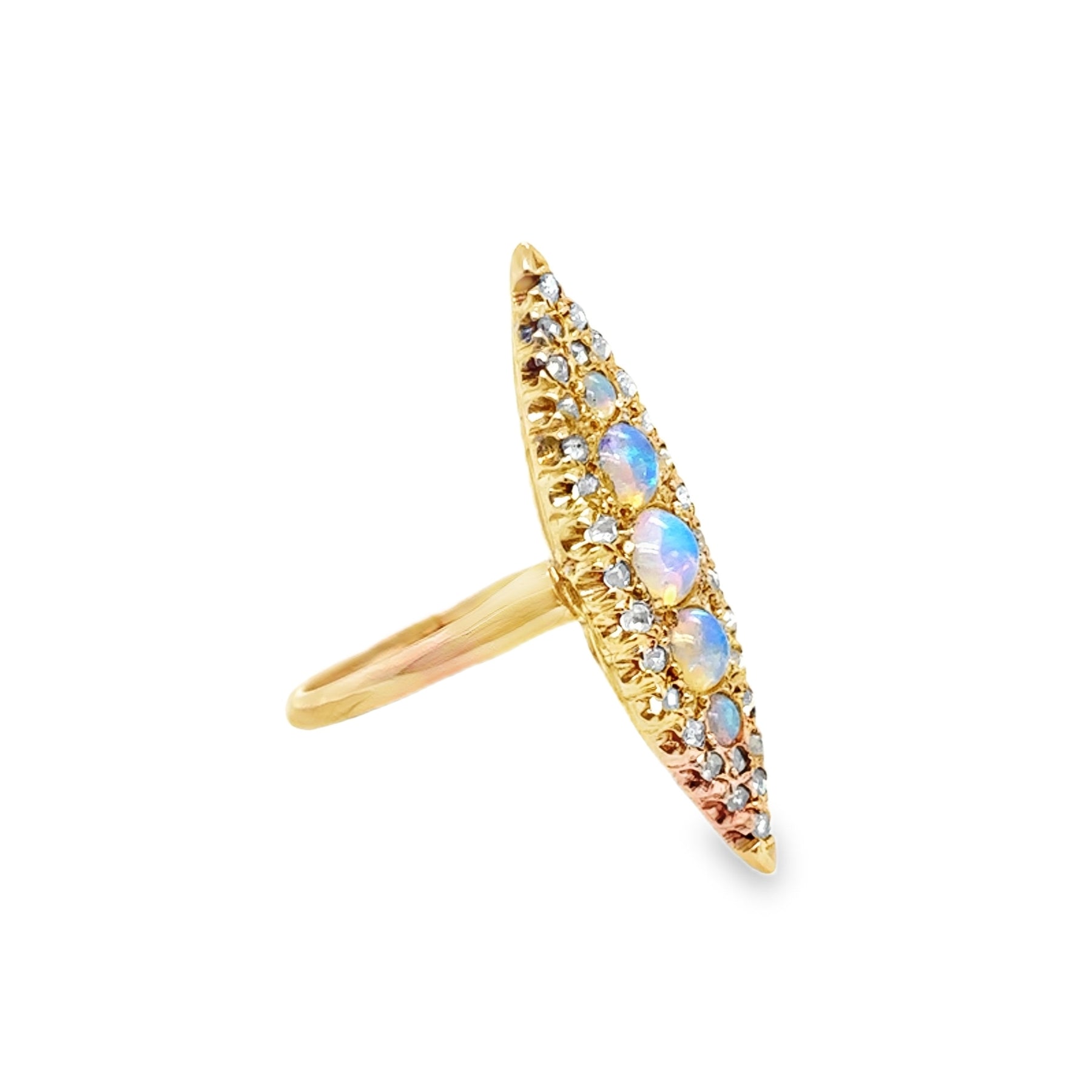 14YK Estate Victorian Opal and Diamond Navette Ring