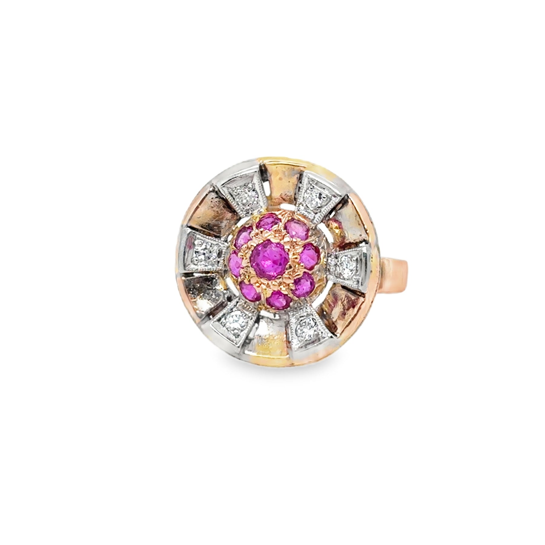 14RG Estate Retro Cocktail Ruby and Diamond Ring