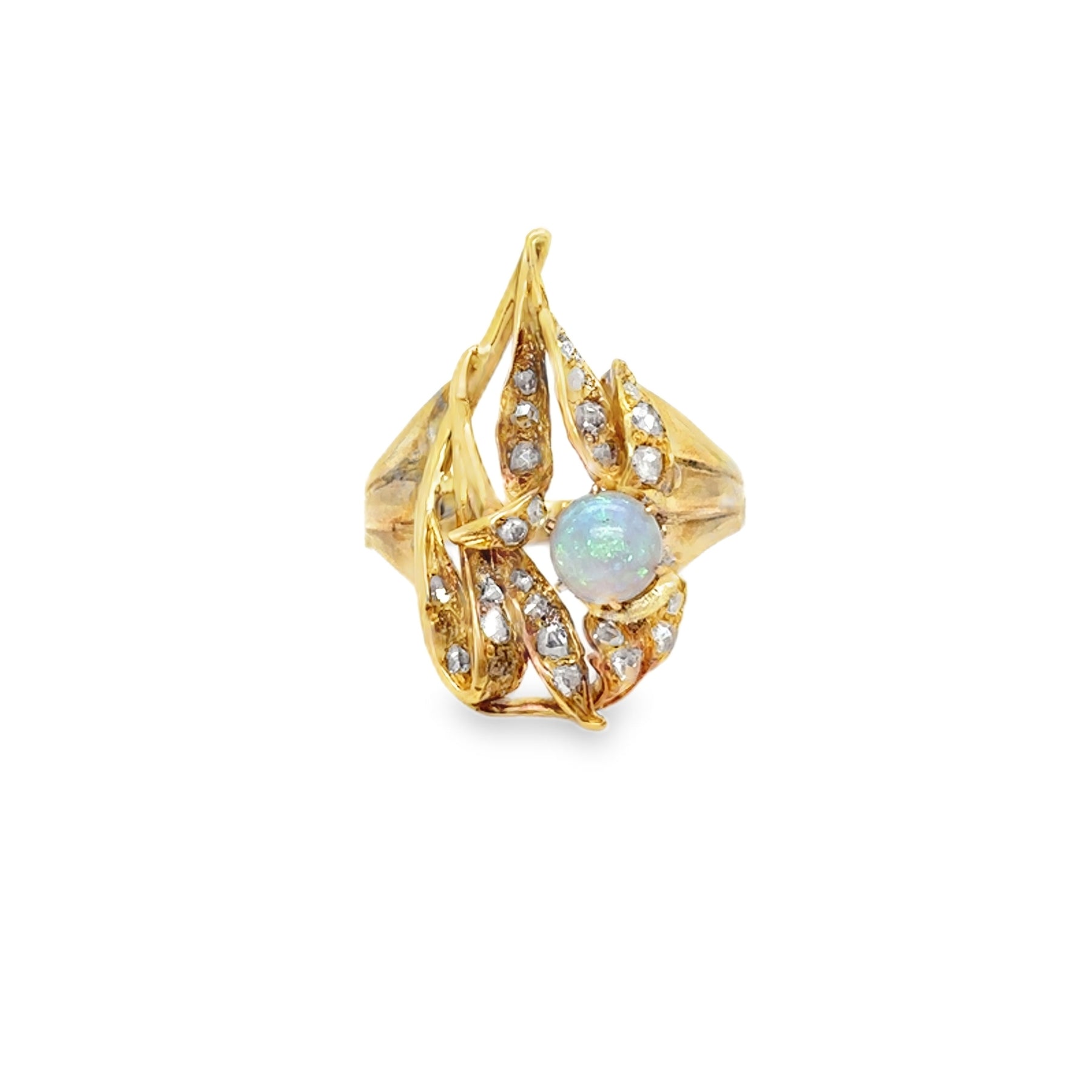 Victorian 14KY Opal & Rose Cut Diamond Ring